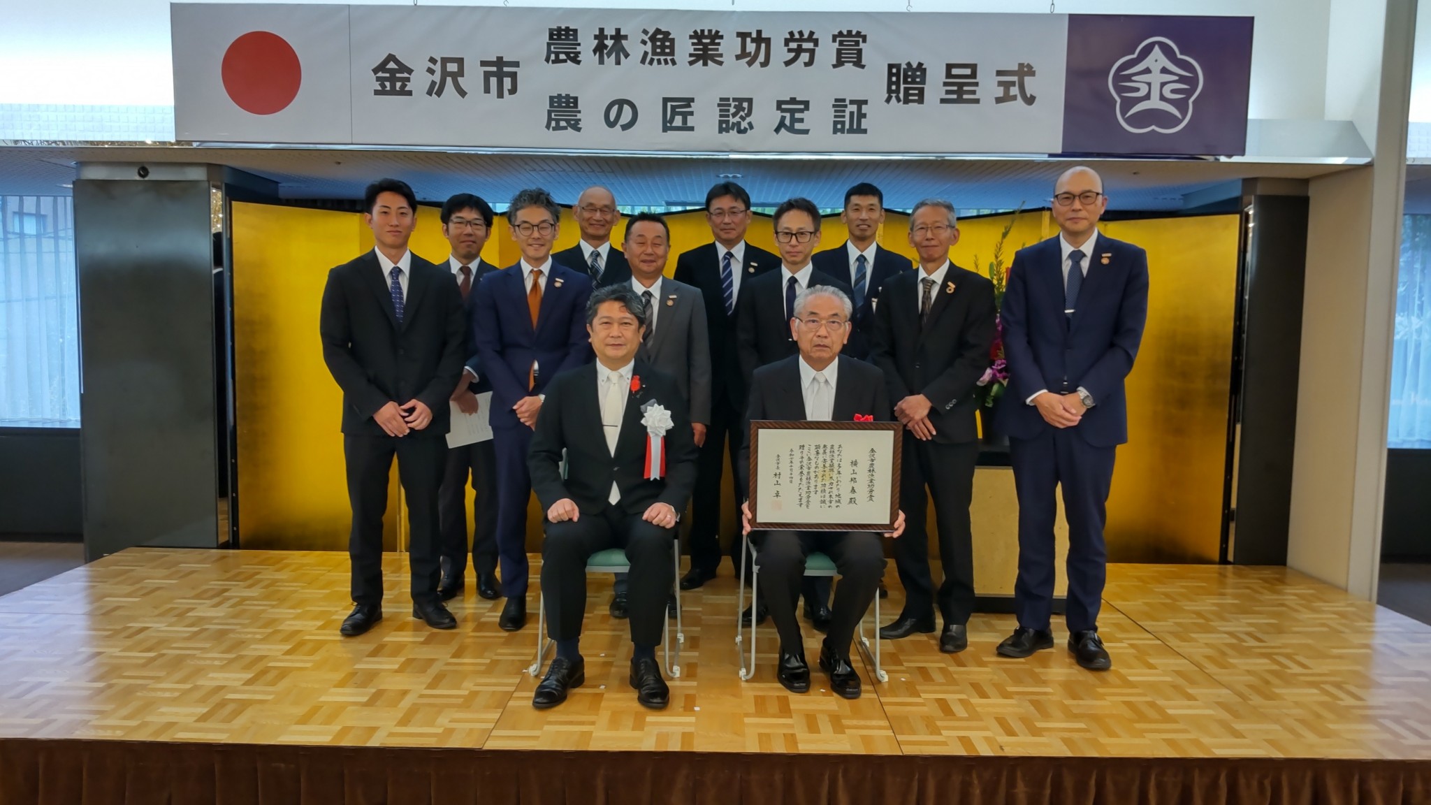 このたび、本組合の前理事である横山邦春氏が、長年にわたり林業の振興および地域の発展に尽力された功績により、金沢市長より「農林漁業功労者」として表彰されました。